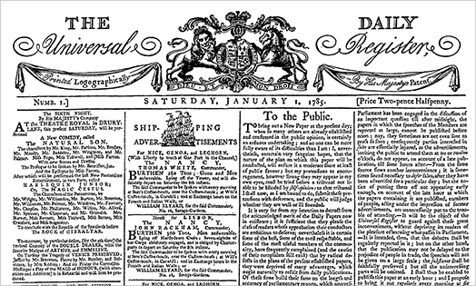 The Daily Universal Register, later renamed The Times, is launched in London.