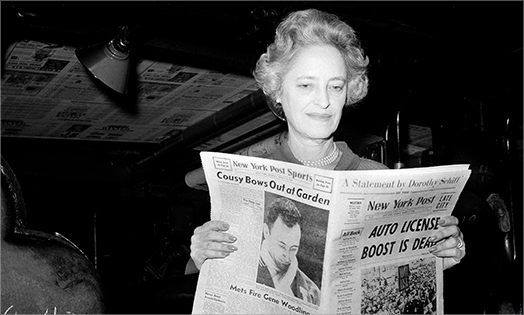 Dorothy Schiff, nicknamed Dolly, becomes the most dynamic female newspaper publisher in New York. From 1939 until 1976, she owned and guided the New York Post, making the publication into a profitable tabloid.