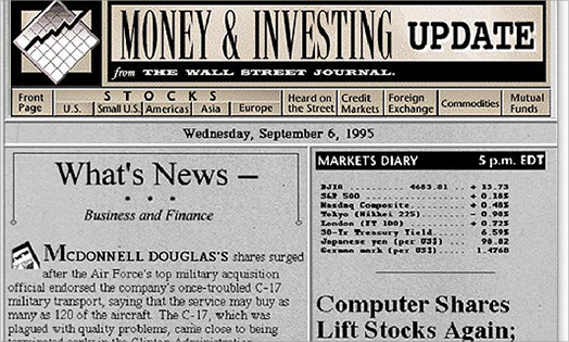 The Wall Street Journal launches its first full news website, Money & Investing Update, marking the beginning of its push toward digital transformation.